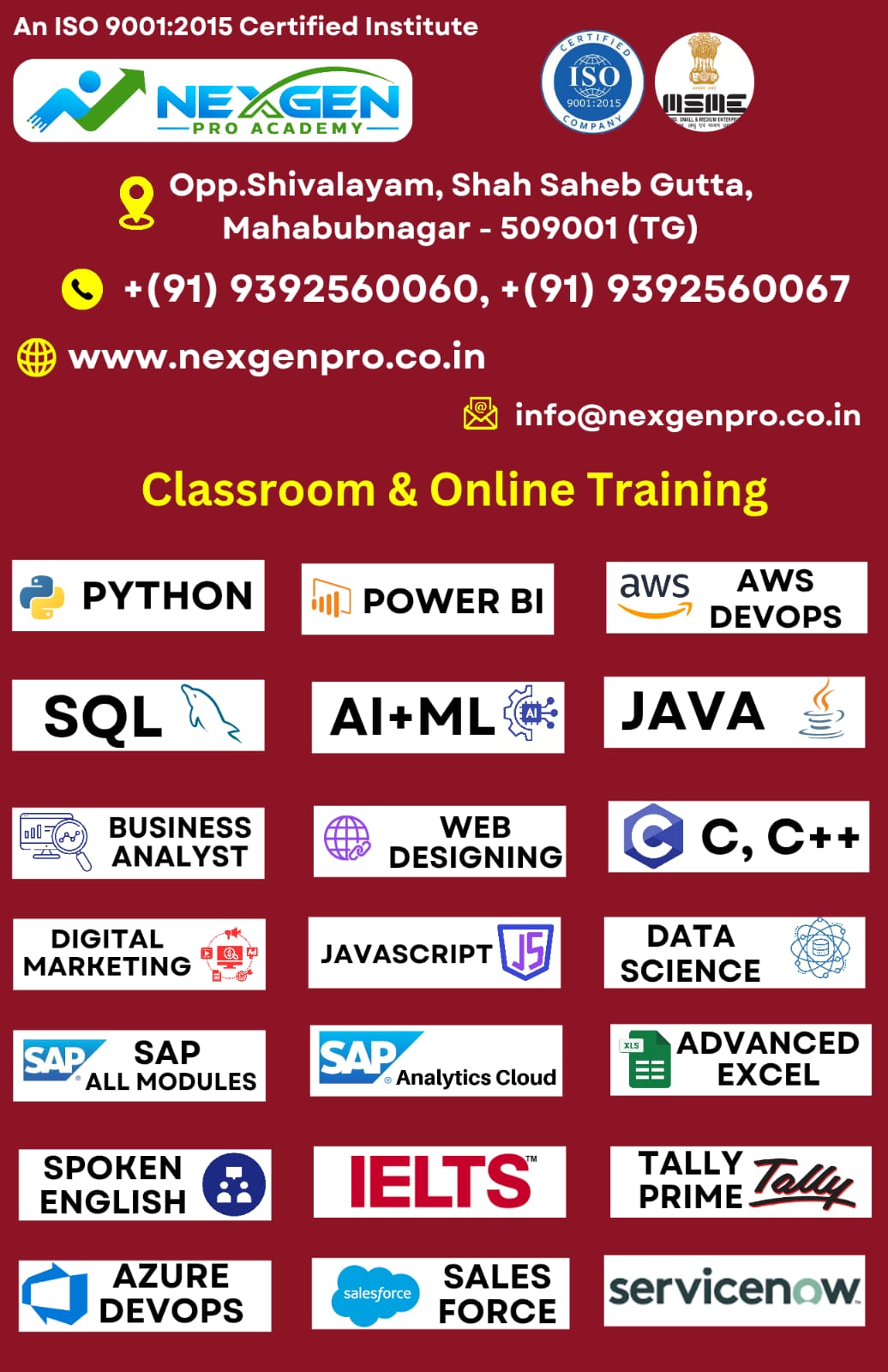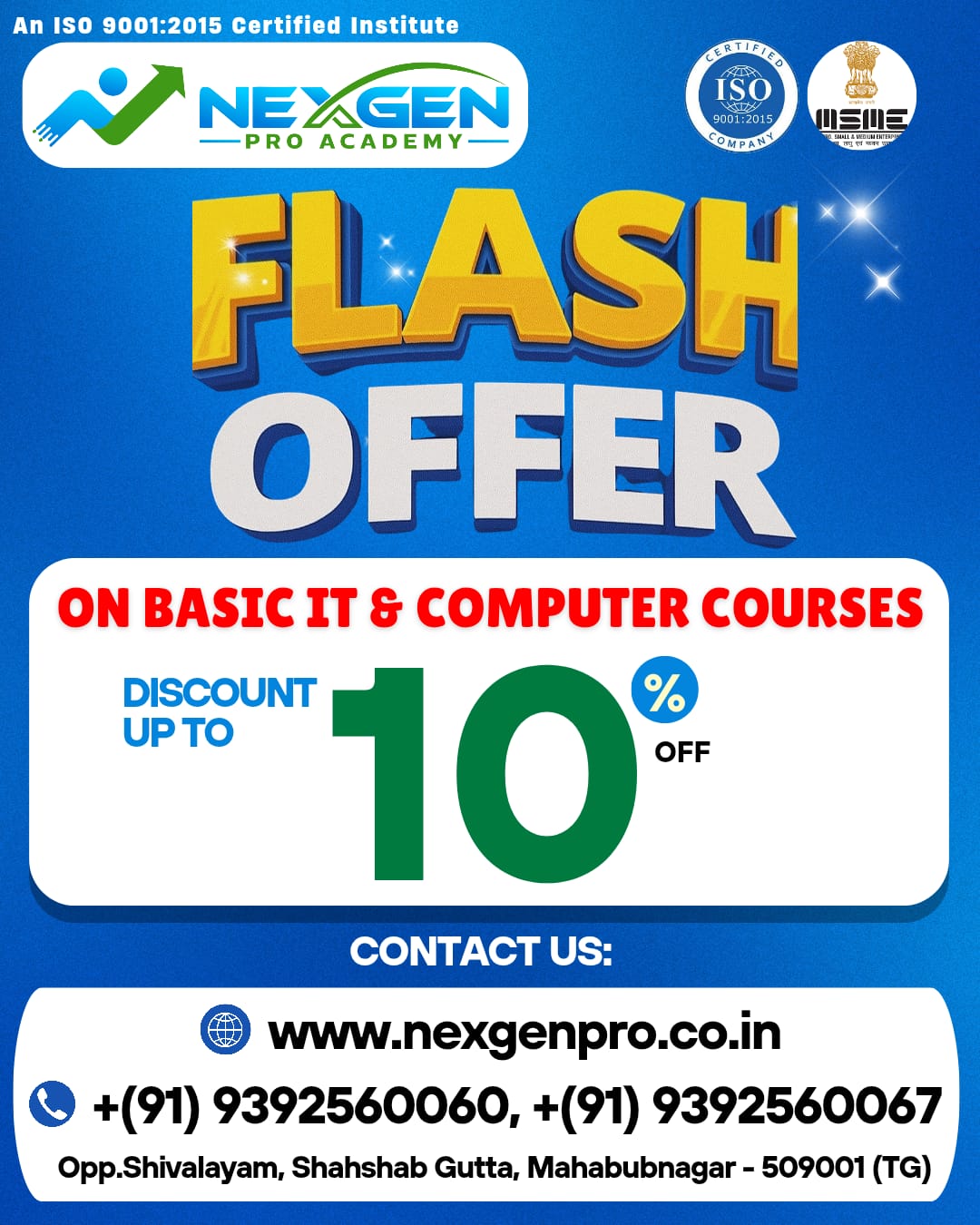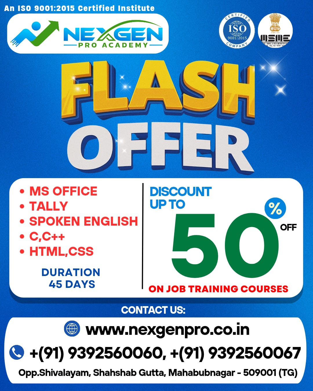 Join NexGen Pro Academy to master in-demand skills, ace competitive exams, and become career-ready. Learn from expert trainers, get hands-on experience, and unlock new opportunities with our industry-aligned courses.